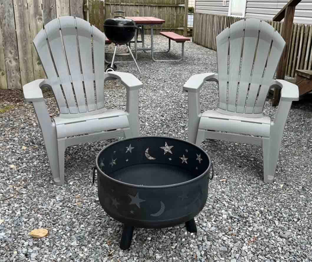 The park model consists of a private bedroom, bathroom, full kitchen and living room. There is a sitting area outside that gives you a view of the campground and beyond. Basic dishes, flatware, pots and cookware are provided for your convenience. There is a microwave, coffee pot, toaster, TV and DVD player. Bring your own towels and linens for a queen bed. Sleeps two people.